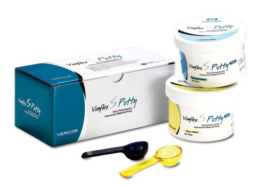 ● Vonflex S Putty is an addition polymerization silicone type composed of hydrophilic vinyl polysiloxane, which helps to create precise shape of oral tissue. Material meets the requirements of ISO 4823.